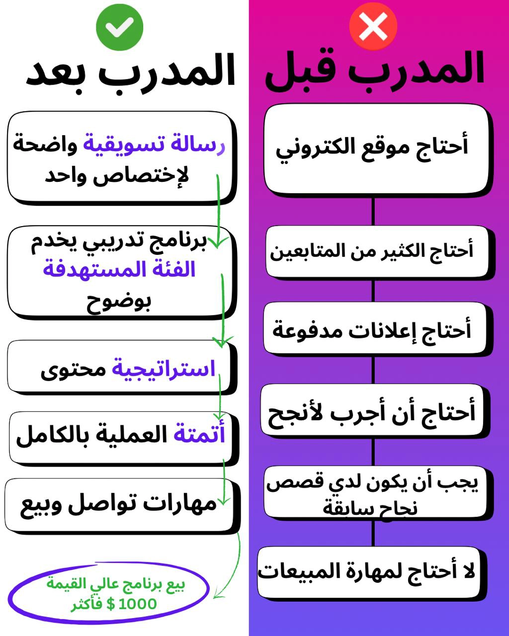 مدرب أو كوتش، وتريد تسويق عملك للوصول لأكبر فئة محتاجة ل خبرتك وتقدرها، وغالباً لديك مشكلة حقيقية في البيع بسبب عدم وضوح المحتوى وافتقاره للتأثير.